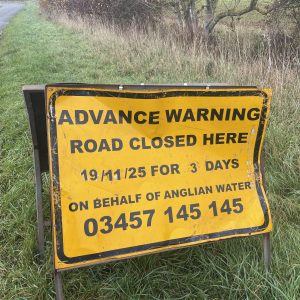 Highways / News Roadworks – 19/21 November – Fenton RoadSource:https://one.network 13 November 202519 November 2025 Road works on Fenton Road by Anglian Water. See this link for more details. Closure SignDetour ShareShareShare